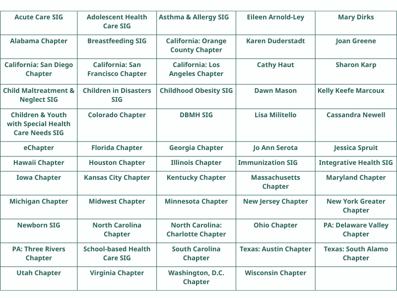We thank our generous chapters, SIGs and NAPNAP leaders for their support in donating these items!