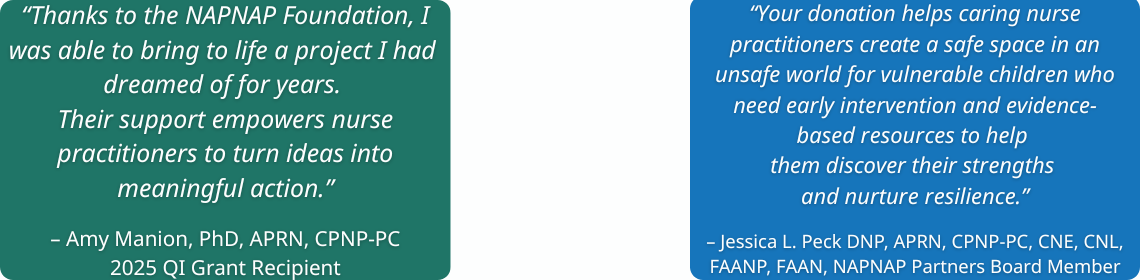 - The NAPNAP Foundation: Your donation to the NAPNAP Foundation is a direct investment in the future of our profession by supporting scholarships, research grants, and educational programs.